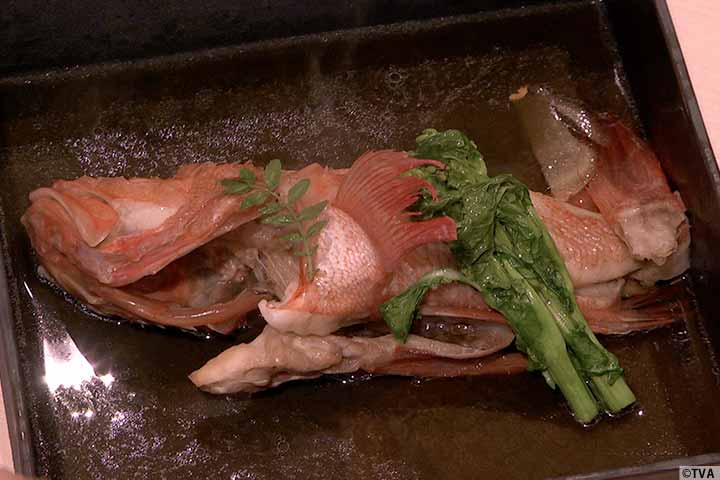 蛤しんじょう、からすみ餅、金目鯛の煮付け、本鮪の刺身、炊きこみ御飯を実食です!