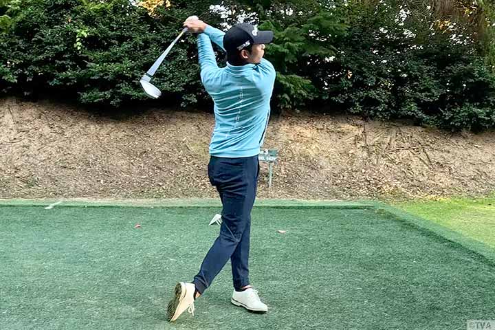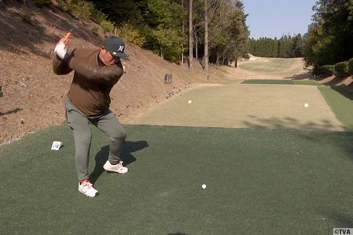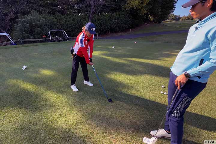 立浪さんが苦手という微妙な前足下がりのスイングをレッスン。