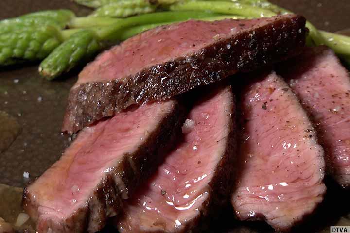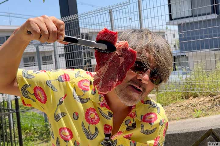ピリ辛!エビのアヒージョ、牛ステーキなどを調理して食します。