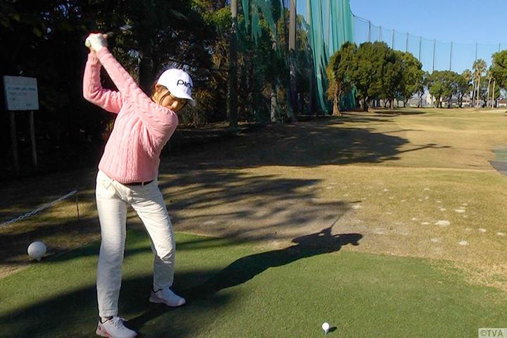 左に引っかける癖があるという喜矢武さんのドライバーをレッスン!