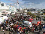 この日の名古屋港は人・人・人。名古屋スペシャル第1弾の放送翌日、しかもロケの舞台となった名古屋港での出初式とあって、その数なんと2万人にも上りました!今年は家族連れの姿も目立ち、「多くの人に楽しんでもらえた」と消防の人たちは嬉しそうでした。出初式の後、消防広場で行われたイベントも大混雑。防火衣を試着したり、救急車に乗ったり、レスキューファイアーショーを楽しんだり。みんな防災への誓いを新たにする1日となったようです。