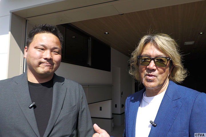 VALENTI JAPANブースでは堀社長とハイエース用新作テールランプや、新型アルファード/ヴェルファイア用のテールランプなどを愉快にご紹介。