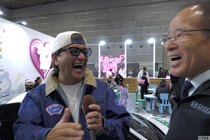 お馴染みスポーツシートのBRIDEブースでは人気レーシングドライバーを大勢招いてのトークショー、土屋圭市さんのサイン会などで大盛り上がり。