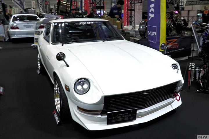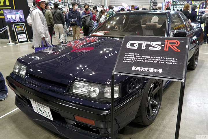 BRIDEの高瀬社長と共に、レーシングドライバー松田次生選手の愛車ステージア、STAR TOADブースのアルミ製ボディのZ、シバタイヤブースのGTS-R、ユーティリタスブースのR30スカイライン、HKSブースのサニー(B310)の他、レーシングサービスワタナベ、オーエス技研、レストアパーツ.comのブースをご紹介。