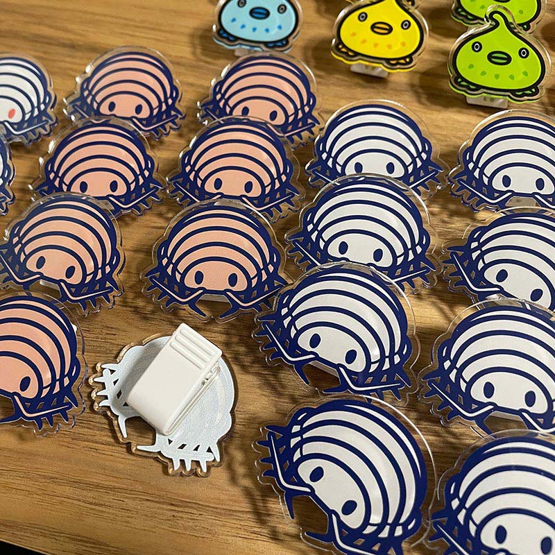| 内容 | 深海生物のダイオウグソクムシに魅了され、勢いでグッズを作っているクリエイターです。グソクムシはじめ深海生物をかわいくモチーフにしたアクリルキーホルダーやステーショナリー、Tシャツなどを出予定です。 |