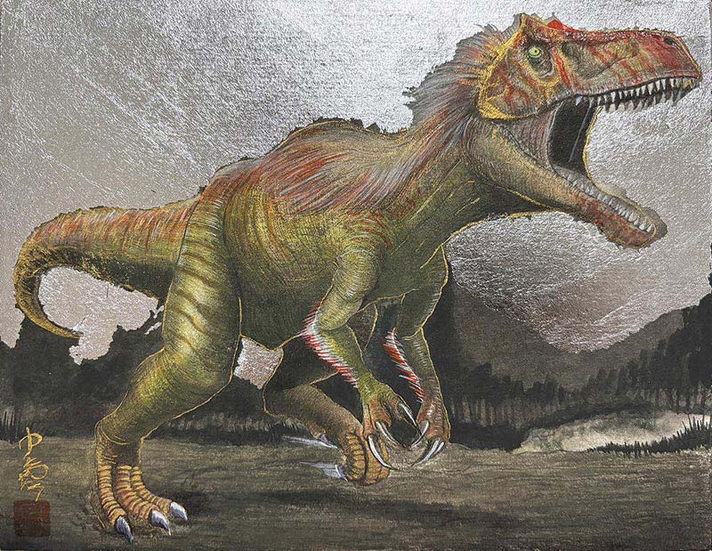 | 内容 | 年々積み重なっていく化石学の研究や実際の骨格をベースに、実際に存在したであろう限りなく現実味に富んだ姿を追求し水墨で描いた恐竜をはじめとした古代生物の絵画作品及び、そのグッズ。 |