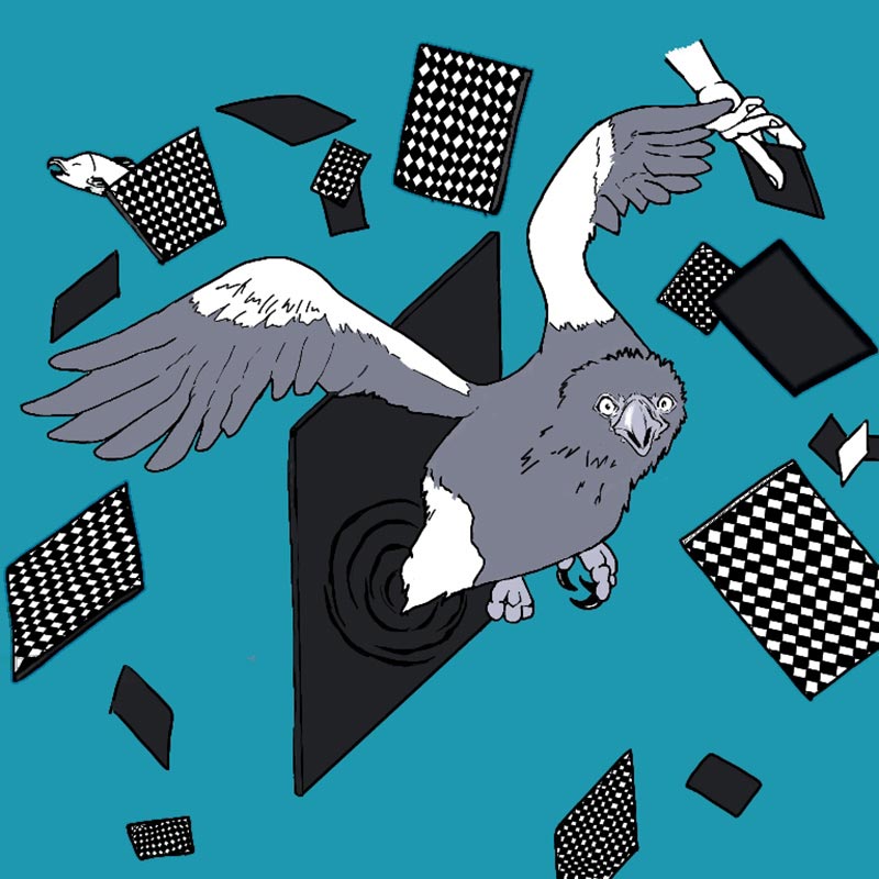 鳥を中心にいきものの絵を描いています。鳥がもし戦ったらとクスっと笑えるテーマのものから自然やゲームの世界を織り交ぜたような作品も描いています。