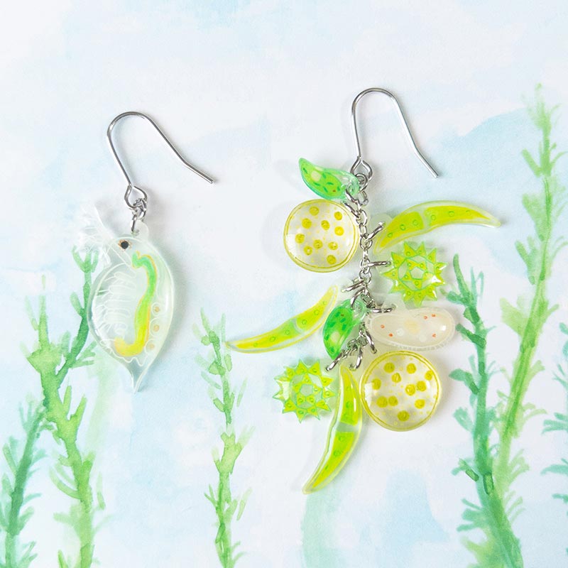 「水の中の生きもの」をテーマにプラバンアクセサリーを制作しております。クラゲや深海生物、古代魚や微生物など250種以上の生きもののアクセサリーを販売予定です。