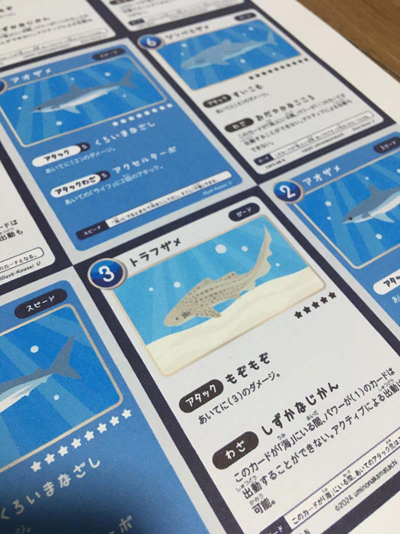 海の生き物のカードゲームや教育関連グッズの販売をします。