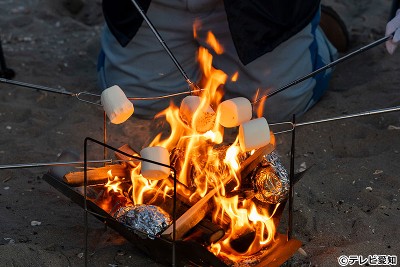 冬の日間賀島リベンジ後編に挑む。憧れの「海辺での焚き火」を作るべく、メンバー自ら火起こしに挑戦。ヘッドフォンを装着し、パチパチと爆ぜる火の音をじっくり味わう究極のASMR企画を敢行する。